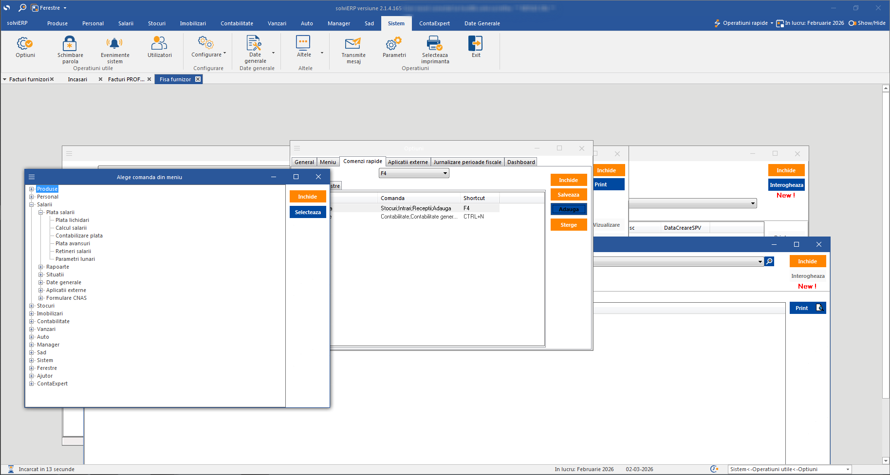 Poți configura butoane de acces rapid cu o tastă sau combinație de taste la orice intrare din meniu — de exemplu, apasă F5 și se deschide direct fereastra de facturare.